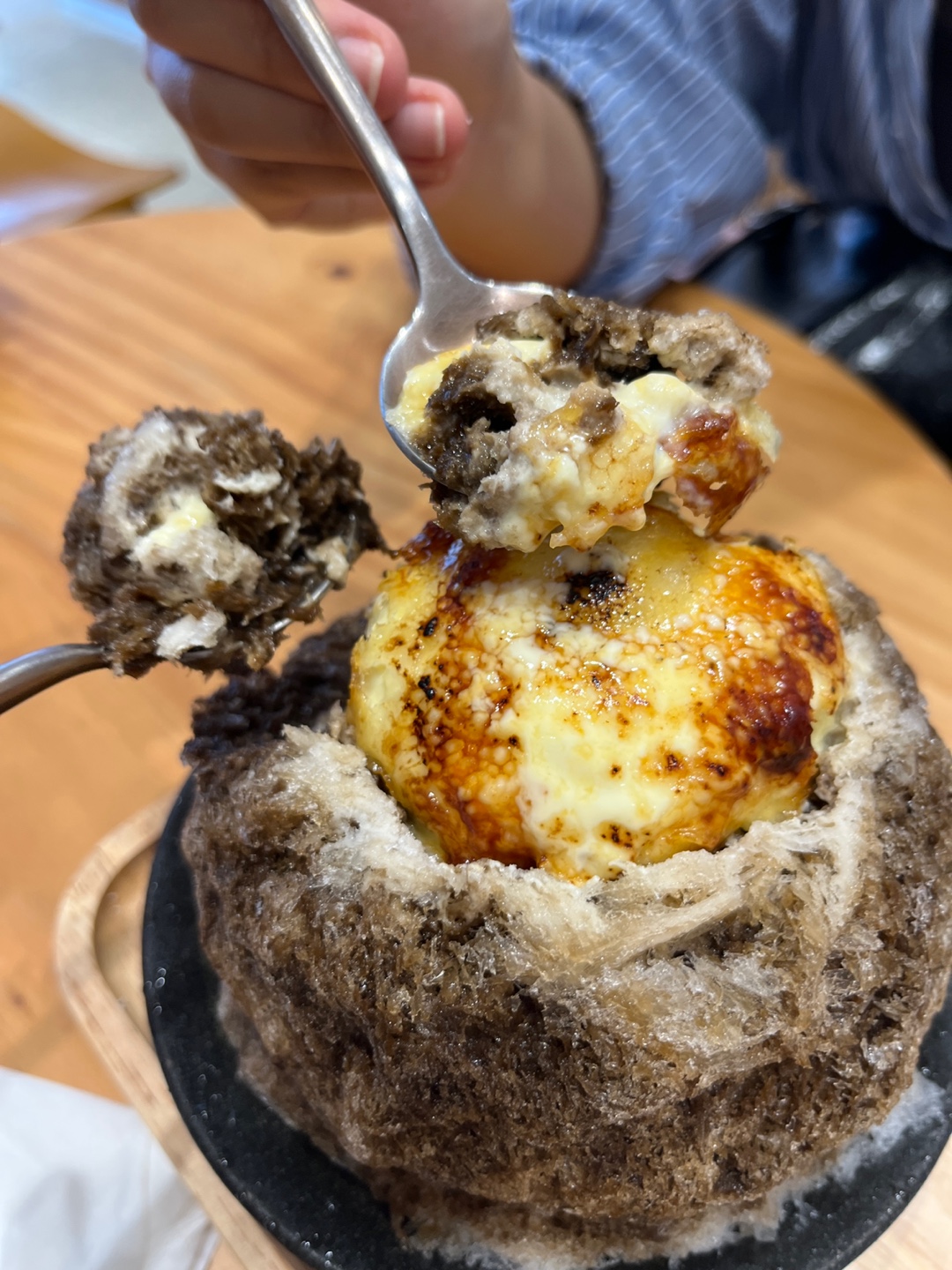 직원분이 테이블로 빙수 서빙해주시면서 토치로 크림브륄레를 완성해주세요. 구경하는 재미도 있었습니다. 빙수집에서 토치라니. 신기하고 재밌는 경험이었어요. 😊