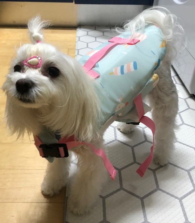 그래도 일상복으로 입는 것이 아니고 물놀이할때 특수하게 입히는 것이라 특별히 교환이나 반품은 하지 않고 쓰려고 해요~ 아마 이르면 금요일, 늦으면 다음주 월요일에는 두부와 물놀이를 할 수 있을 것 같은데요! 기대됩니다~ 본격적인 물놀이 해본 뒤에 후기 한번 더 남겨볼게요,