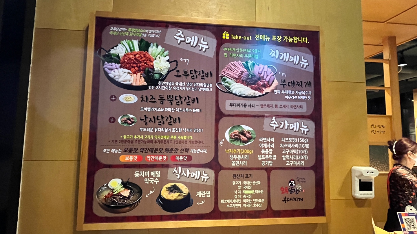 동치미 메밀 막국수, 계란찜 등의 식사메뉴도 있고 토핑도 여러가지라 기호에 맞게 추가할 수 있습니다. 특이하게 닭갈비 집에서 부대찌개도 함께 판매하고 있어요. 전 메뉴는 포장이 가능하다고 합니다.
