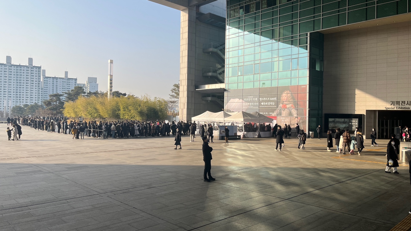 참고로 저는 설 연휴에 방문하여 인파가 몰릴 것을 감안하여 운영 시작인 오전 10시 전에 도착하였답니다. 9시 40분 가량 도착하였는데 앞에 사람들이 저렇게나 많더라구요. 현재 유료로 진행중인 특별전과 테마전의 인기가 상당한 것 같아요. 연휴나 주말이 아닌 평일에 관람하면 조금 덜하지 않을까 싶어요.