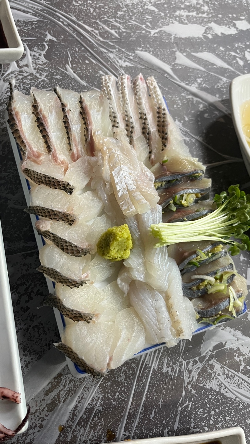 저희가 방문했을 때 회는 농어, 참가자미, 그리고 방어 초절임(?)이 나왔습니다. 아주 쫄깃하고 맛있었어요. 위에서도 말씀 드렸지만 식사를 목적으로 방문하시기에는 조금 부족함이 느껴질 수 있는데요. 술 거하게 마실 생각으로 방문하면 너무 좋을 듯 합니다. 자연산 회랑 해산물이 계속해서 나오기 때문에 술이 넘어가지 않을 수 없어요..