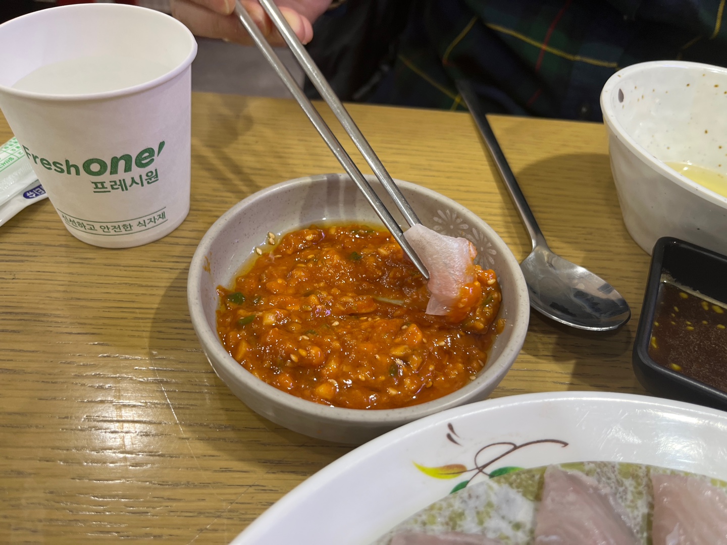 오징어랑 세꼬시 방문하면 기본적으로 죽과 미역국이 나오는데요. 미역국에 별다른게 들어있지 않아도 맛있어요 ~ 탕을 하나 시킬까 했는데 초밥을 시키게 되어 국물은 미역국으로 대신했답니다. 다 먹고 리필 요청드리면 뜨거운 국물로 가져다주세요.