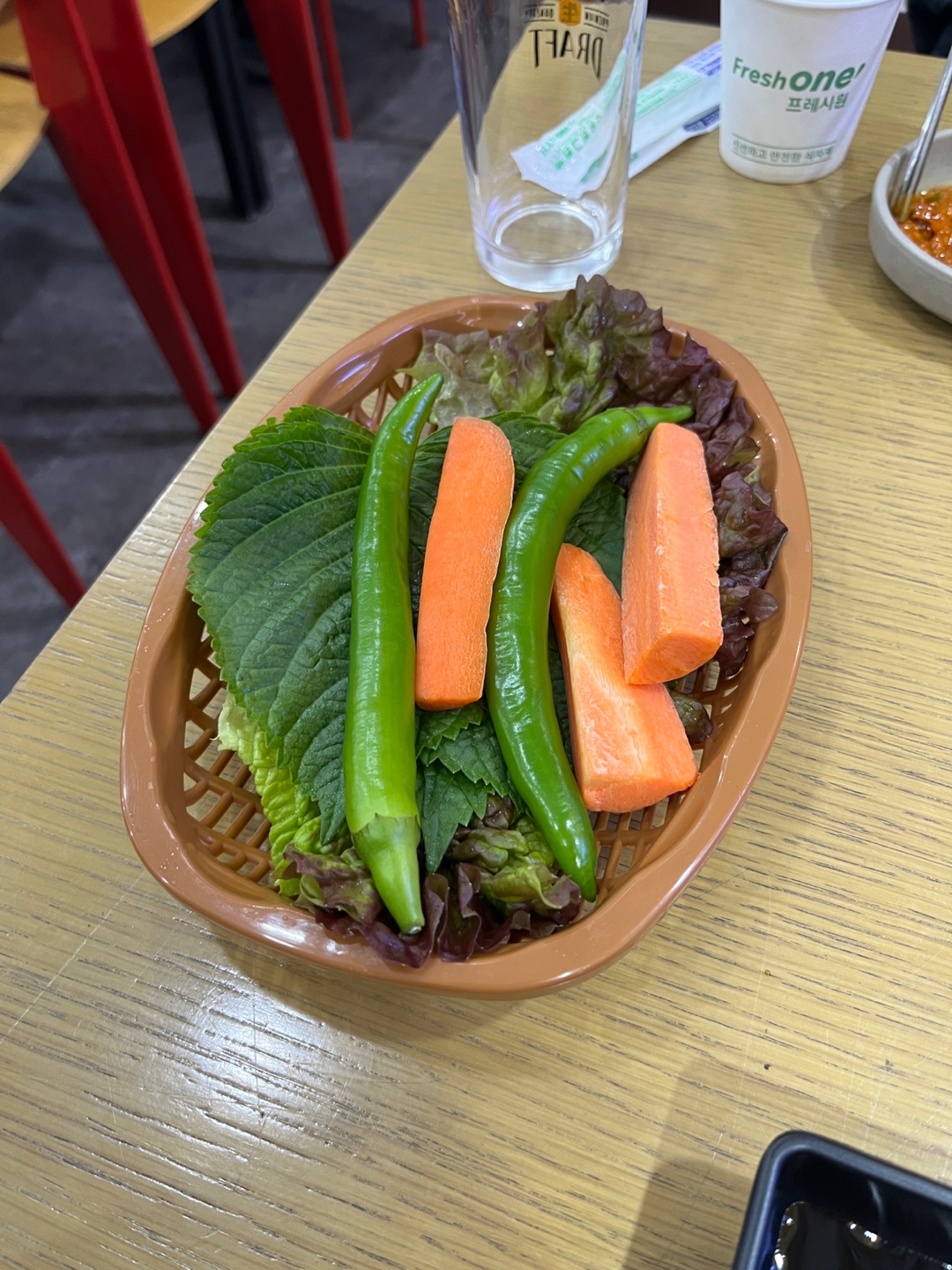 막장, 쌈채소, 고추, 당근이 나오고 묵은지가 나옵니다. 마늘과 와사비는 기본이죠. 포장 주문해도 내용물 거의 동일하게 오는 것 같아요. 죽 외에는 다 받아본 듯 합니다. 술을 마시면 안되는 컨디션이어서 아쉽게도 맥주로 목축임만...