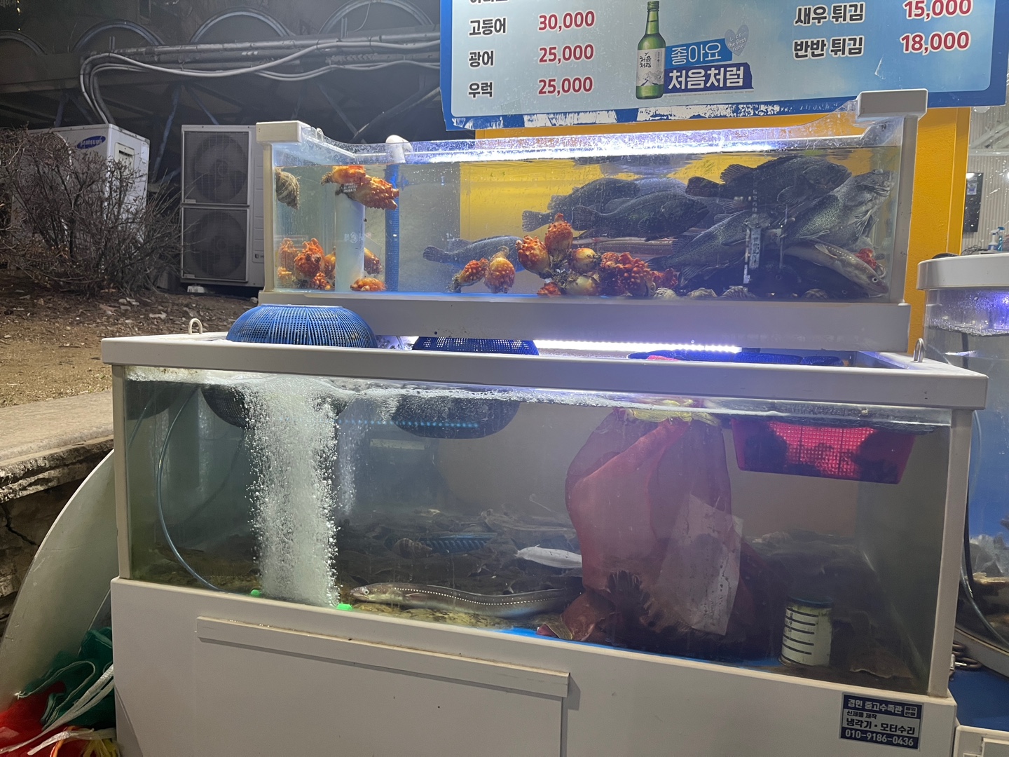 벌써 5번 이상 재방문하였는데요. 일단 회가 무지 깔끔한 점, 비린내 없는 점, 밖에 있는 어항(?)도 깨끗한 점, 가격대가 부담스럽지 않은 점 등등 여러 이유로 자꾸 가게 되네요. 그리고 무엇보다 아주 맛있습니다.