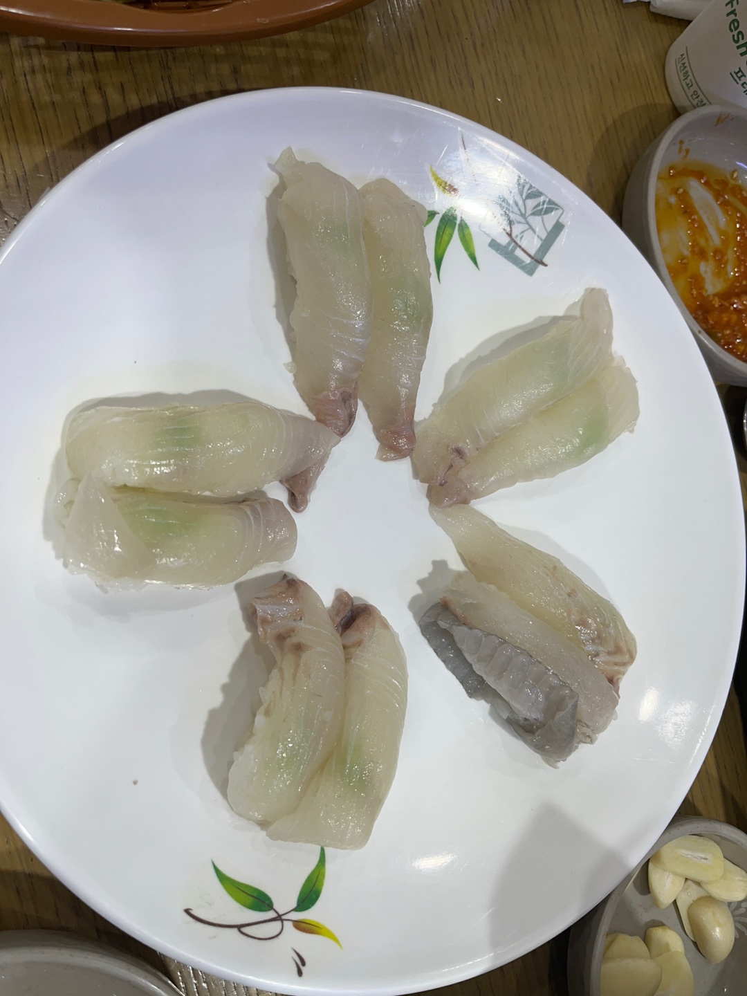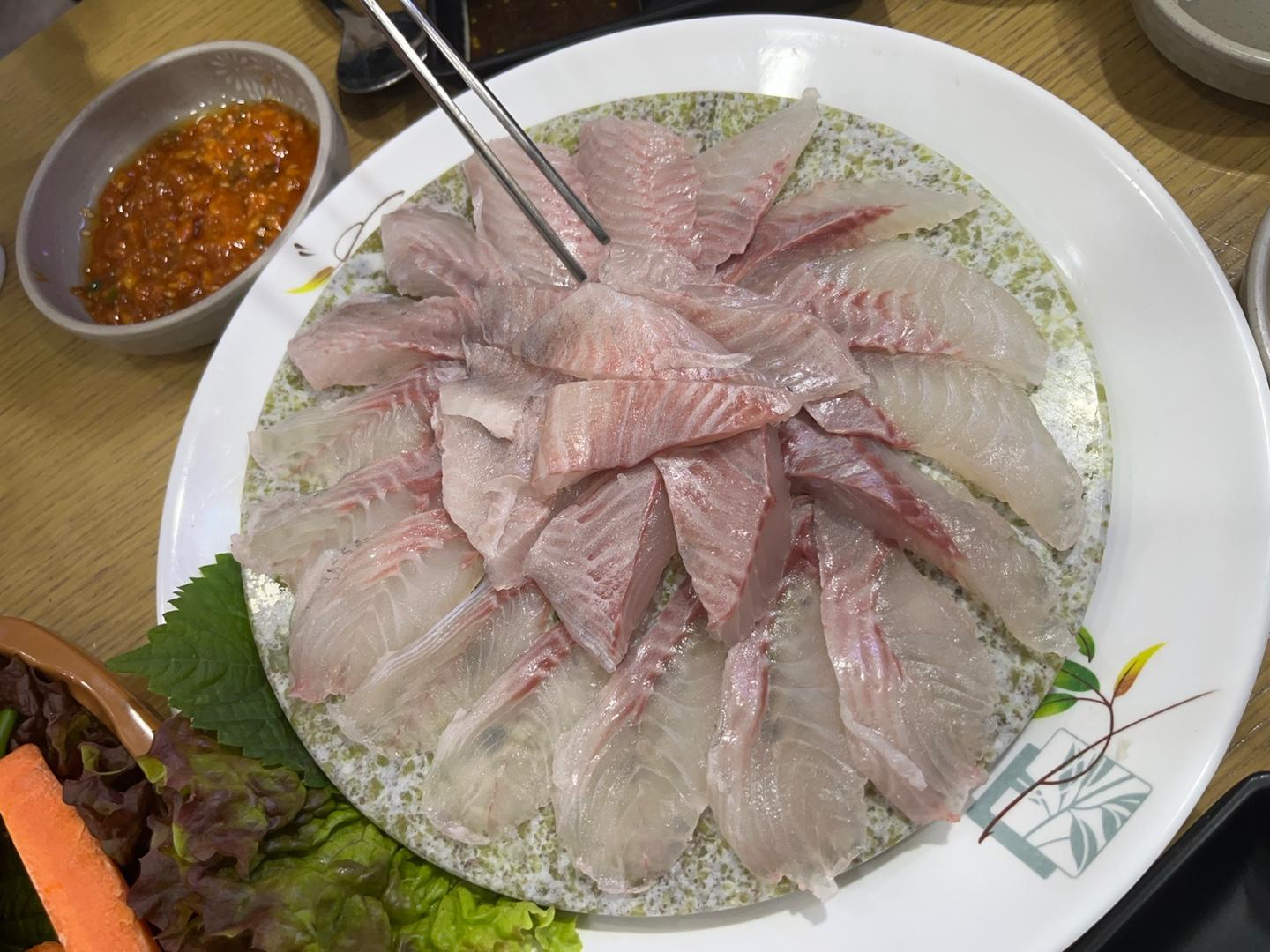 저는 이날 줄돔을 먹었습니다. 5만원이었어요. 사장님께 추천받아 주문했는데 아주 쫄깃하고 깔끔하고 맛있었답니다. 회도 두툼하게 얇게 부위별로 알맞게 썰어주신건지.. 씹는 맛을 다양하게 느낄 수 있어 좋아요. 사실 전문적 지식은 전무하다시피한데요. 오리역 오징어랑 세꼬시 방문해서 회가 맛없었던 적은 없었어요. 늘 싱싱하고 굿입니다.