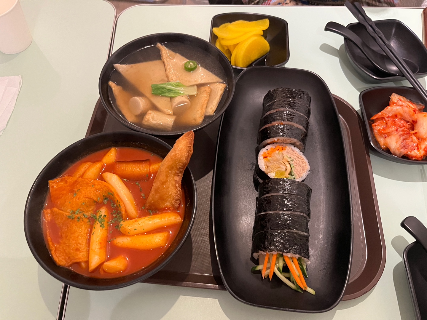 저는 아침을 두둑하게 먹고 방문했던지라 둘이 가서 김밥 한줄과 떡볶이를 주문하였답니다. 김밥은 종류가 많아 고민하다가 묵은지참치로 주문하였습니다. 국물을 기본으로 주시지 않는다는 후기를 보고 어묵탕도 하나 주문하였어요.