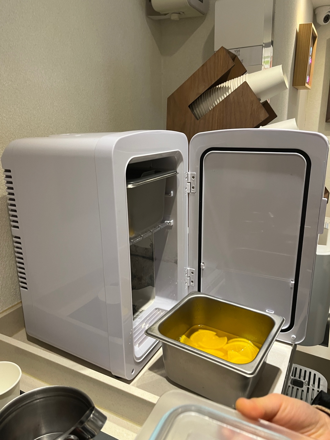 단무지와 김치는 미니냉장고에 넣어져있어서 먹을 만큼 꺼내서 먹을 수 있답니다. 깔끔해서 좋았어요. 숟가락과 젓가락, 그리고 앞접시도 직접 가져다 먹을 수 있으니 이용하시면 됩니다. 아무래도 매장 크기가 협소하다보니 셀프바 이용하시는 게 동선에도 좋으리라 생각이 들었어요.