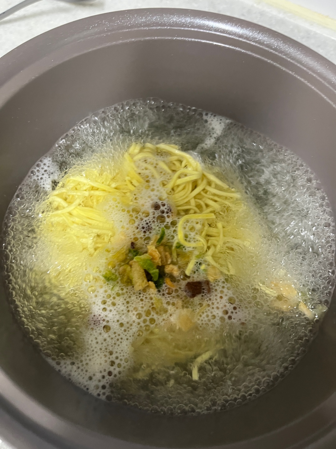 - 끓는 물 600mL 정도에 면, 후레이크만 넣고 약 4분 30초 더 끓입니다.