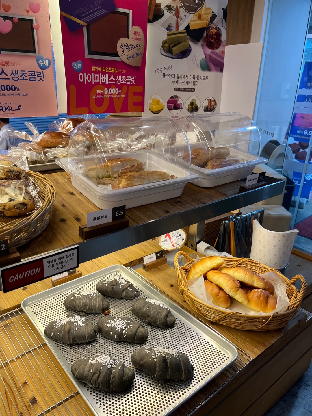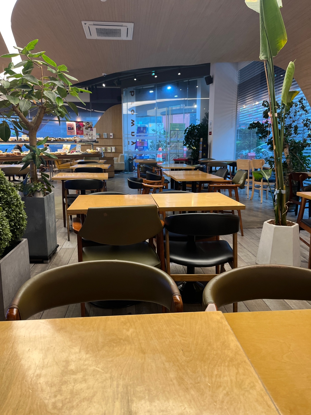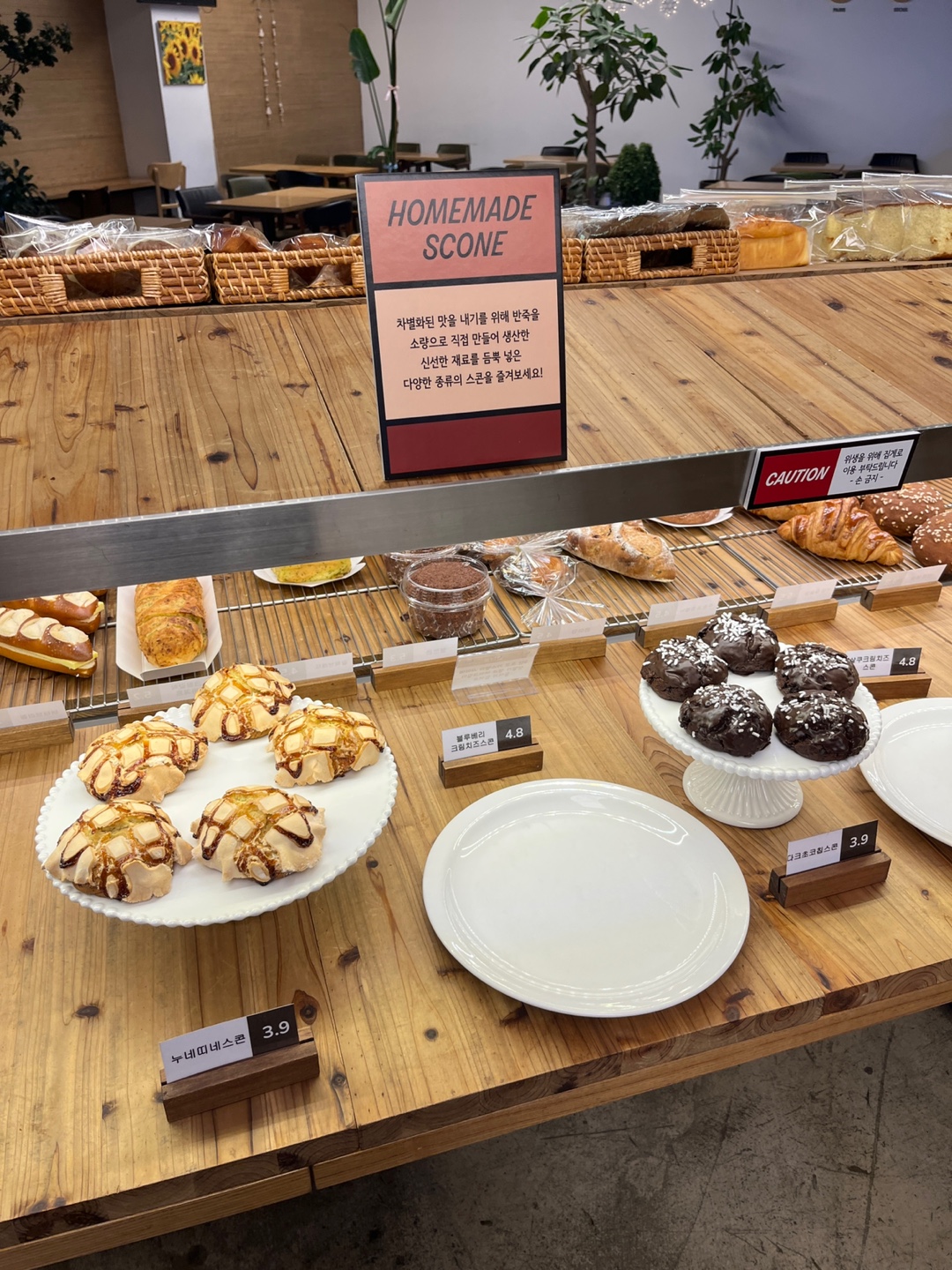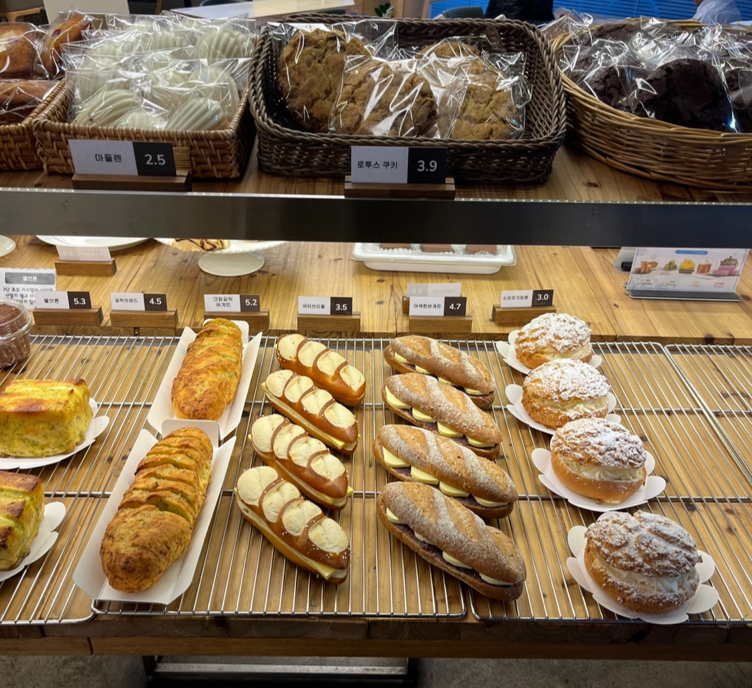 저는 사람이 많지 않은 쪽으로.. 의외로 어르신들이 많아서 놀랐구요. 가족단위로 나오신 분들도 많았답니다. 저는 혼자 꿋꿋하게 자리를 잡고, 내 메뉴가 나오기만을 기다리면서. 오랜만에 방문한 브라우니70 빵 사진들도 찍어보았어요. 소금빵 맛있어보였지만 이미 주문을 하였으니 욕심부리지 않기로...