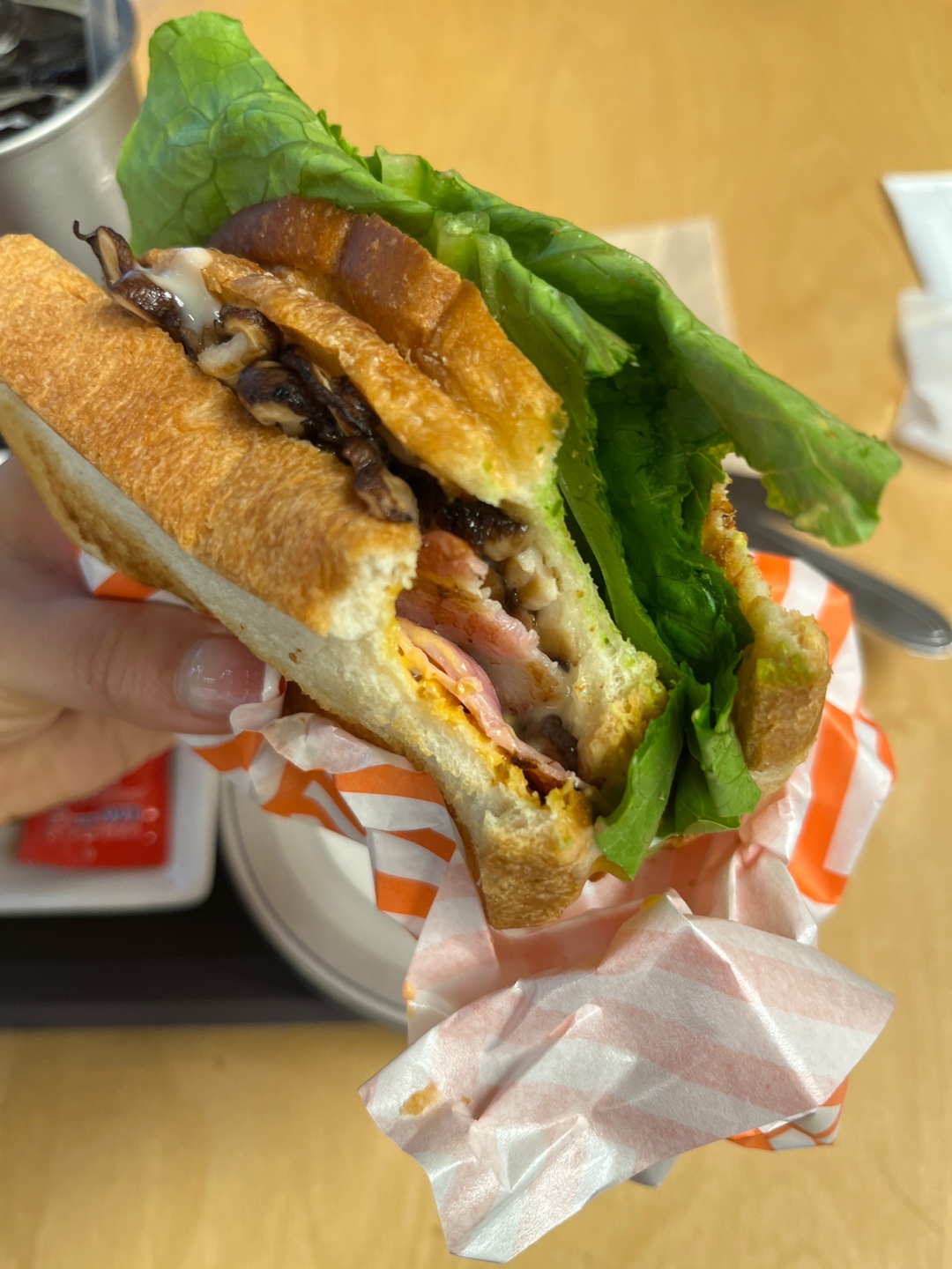 브런치를 먹기 위해 고민하던 중, 에멘탈 머쉬룸 샌드위치 세트를 주문하였습니다. 저는 커피만 나오는 줄 알았는데, 나중에 세트 나온걸 보니 감튀도 포함되어 있더라구요. 가격은 11,400원이요.