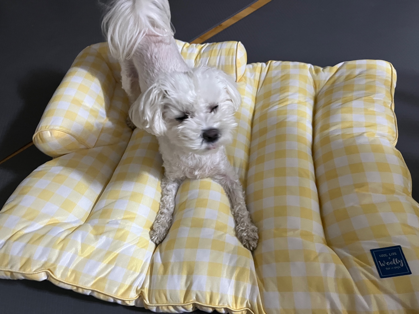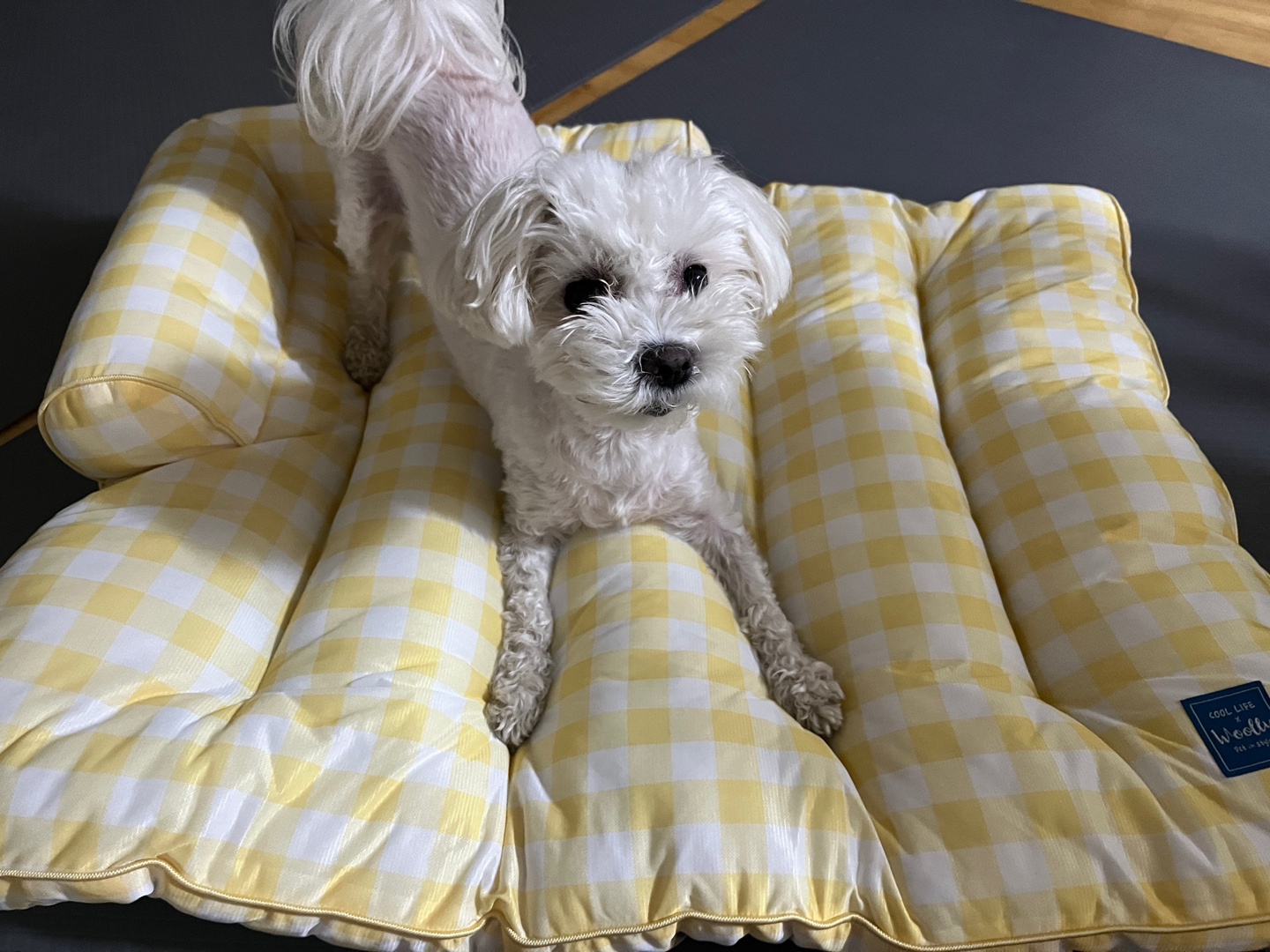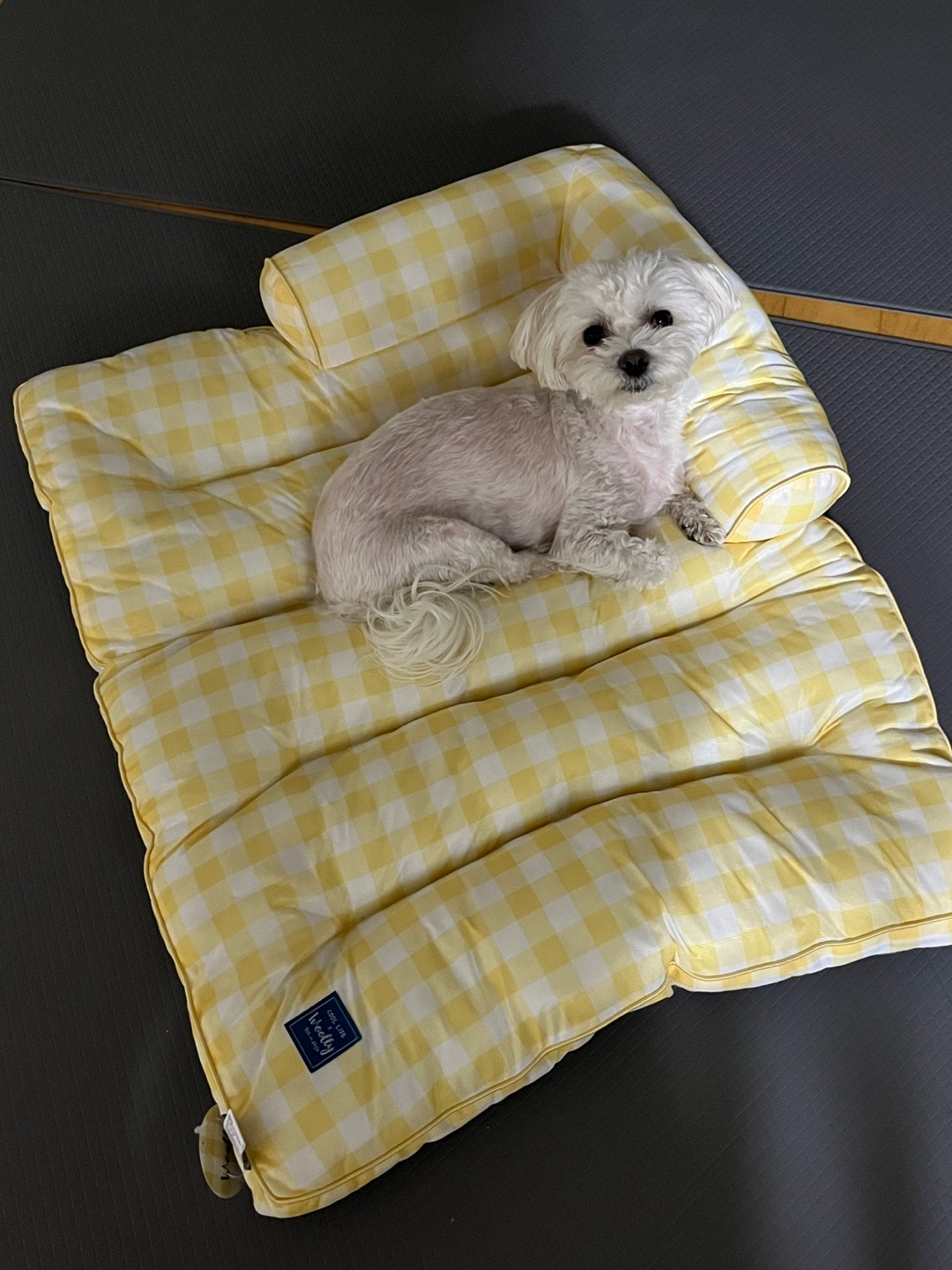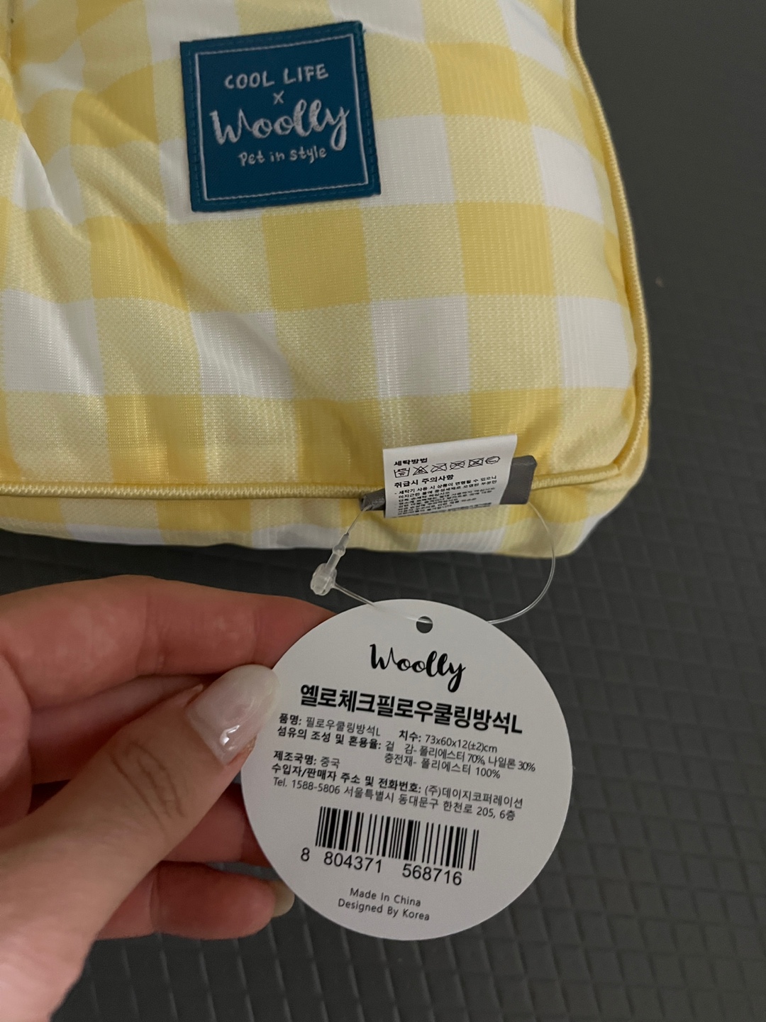 그리하여 구매하게 된 울리 체크 필로우 옐로우입니다. 저는 이왕이면 방석과 집은 큰 제품을 좋아합니다. 여유롭게 누울 수 있어야 제 맘도 편하더라구요. 구매하고 1차로 수령하였는데, 배송까지 일주일가량 시간이 소요되었답니다. 지금은 1차 물량이 모두 소진되어 예약 판매 진행 중이라고 하네요.