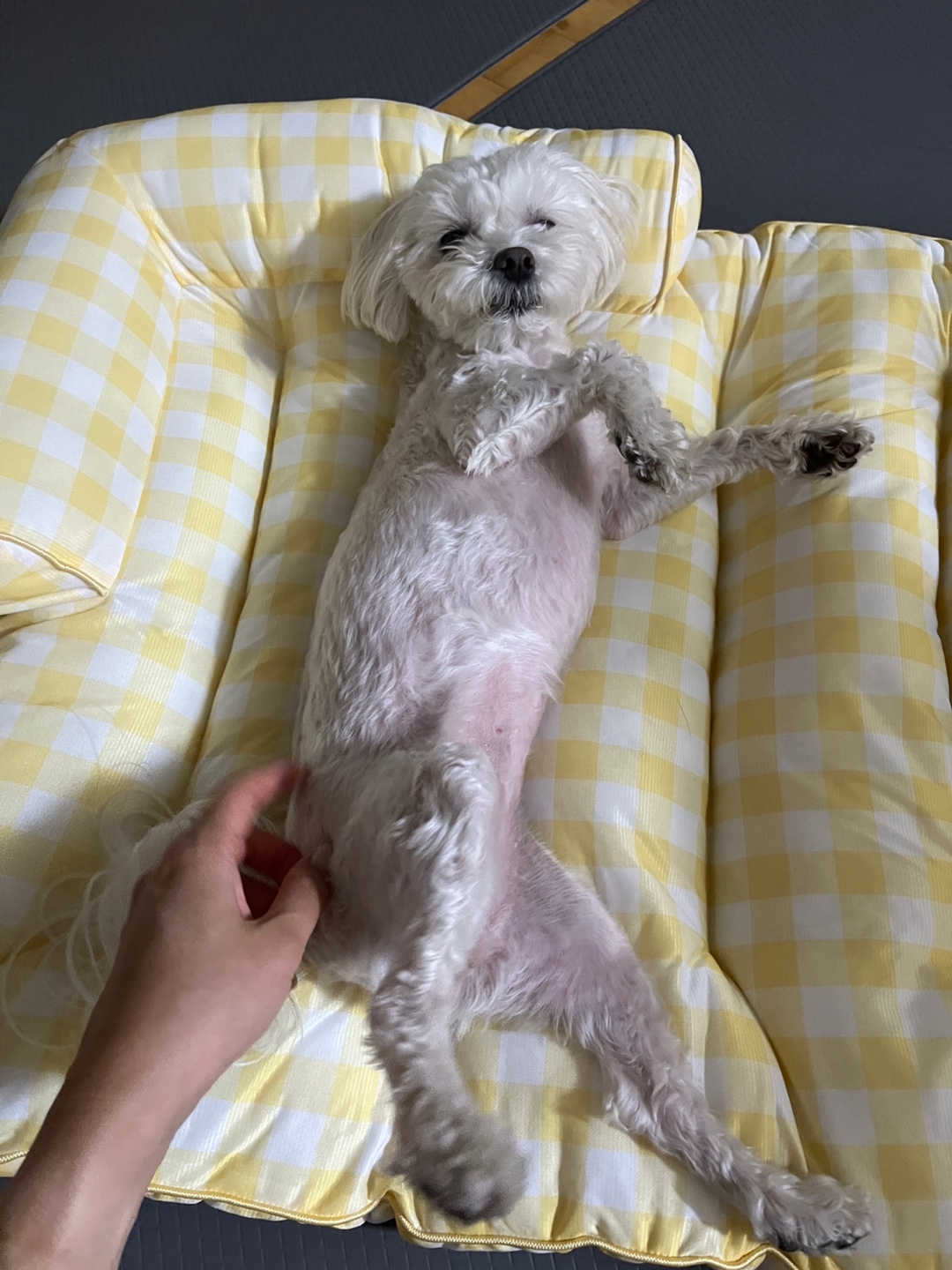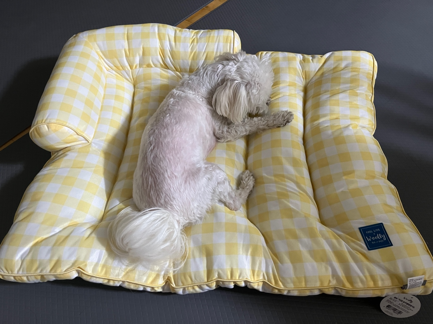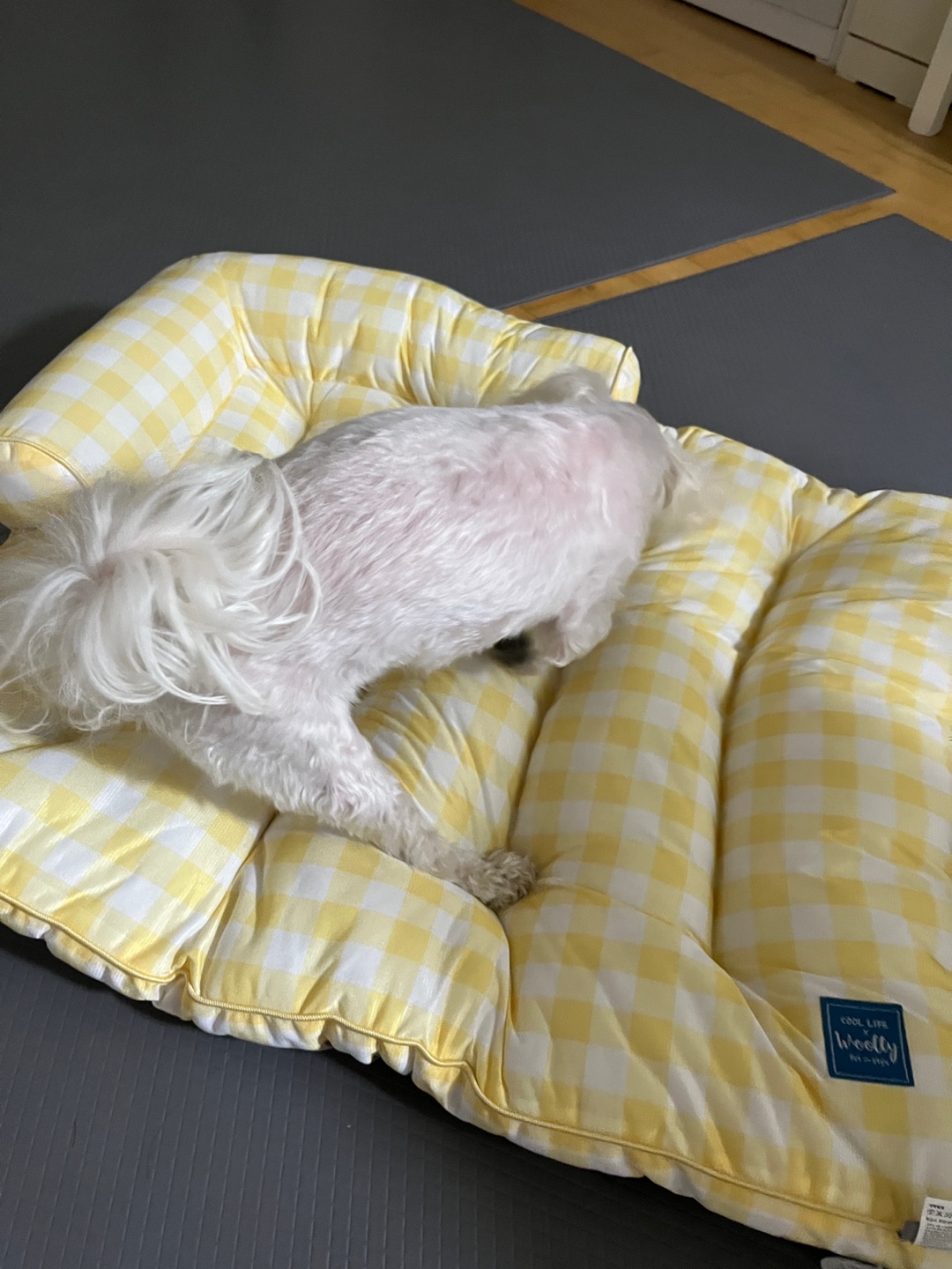 배송 받아보자마자 두부는 너무 좋아하고, 바로 자리 잡고 눕더라구요. 오늘 하루종일 외부에서 더워했어서 안쓰러웠는데, 시원한지 편히 누워서 쉬고 자기 냄새 묻히는 걸 보니 흐뭇했습니다.