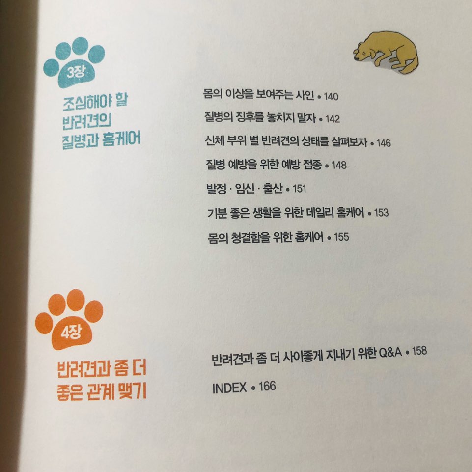 목차를 살펴보시면 아시겠지만, 기본적으로 우리가 강아지를 키우면서 마주할 수 있는 상황들이 나열되어 있어요. 산책과 배변, 사회화는 모든 견주들이 공통적으로 가지고 있는 고민이 아닐까 싶습니다.