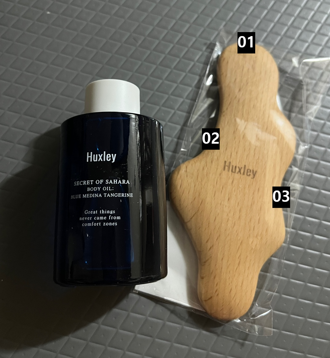 헉슬리 홈페이지, 올리브영, 다른 온라인몰 검색해보니 가격도 여기저기 다르고 구성도 다르더라구요. 저는 이왕이면 바디 마사지 같이할 수 있는 괄사가 있는 패키지가 좋다고 생각하여 어렵게 올리브영 오프라인매장에서 하나 남은 걸 구매하였습니다. 3만원대에 구매하였어요.