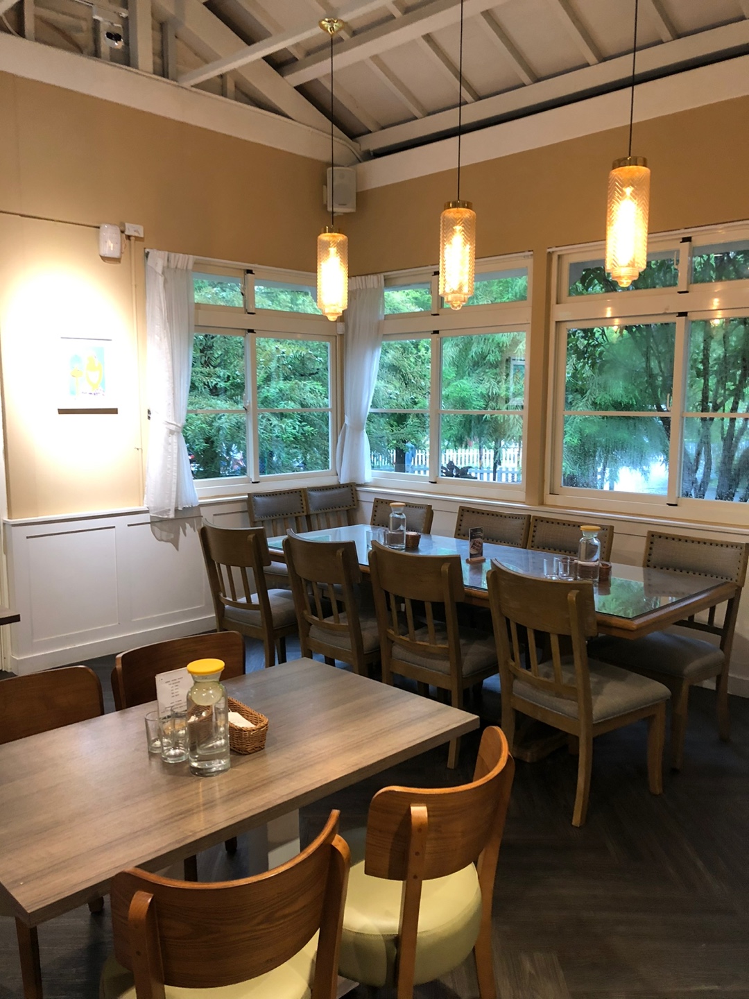 나중에 보니 닭날개 요리도 시켰더라구요? 와플이랑 너무 뜬금없는 조합이긴 하지만 둘 다 너무 맛있었습니다. 단순히 분위기 좋은 카페만이 아니라 디저트와 식사메뉴 모두 맛있는 곳이었어요. 비가 오긴 했으나 창으로 보이는 풍경이 너무 좋았고, 조용해서 대화를 나누기에도 좋았습니다.