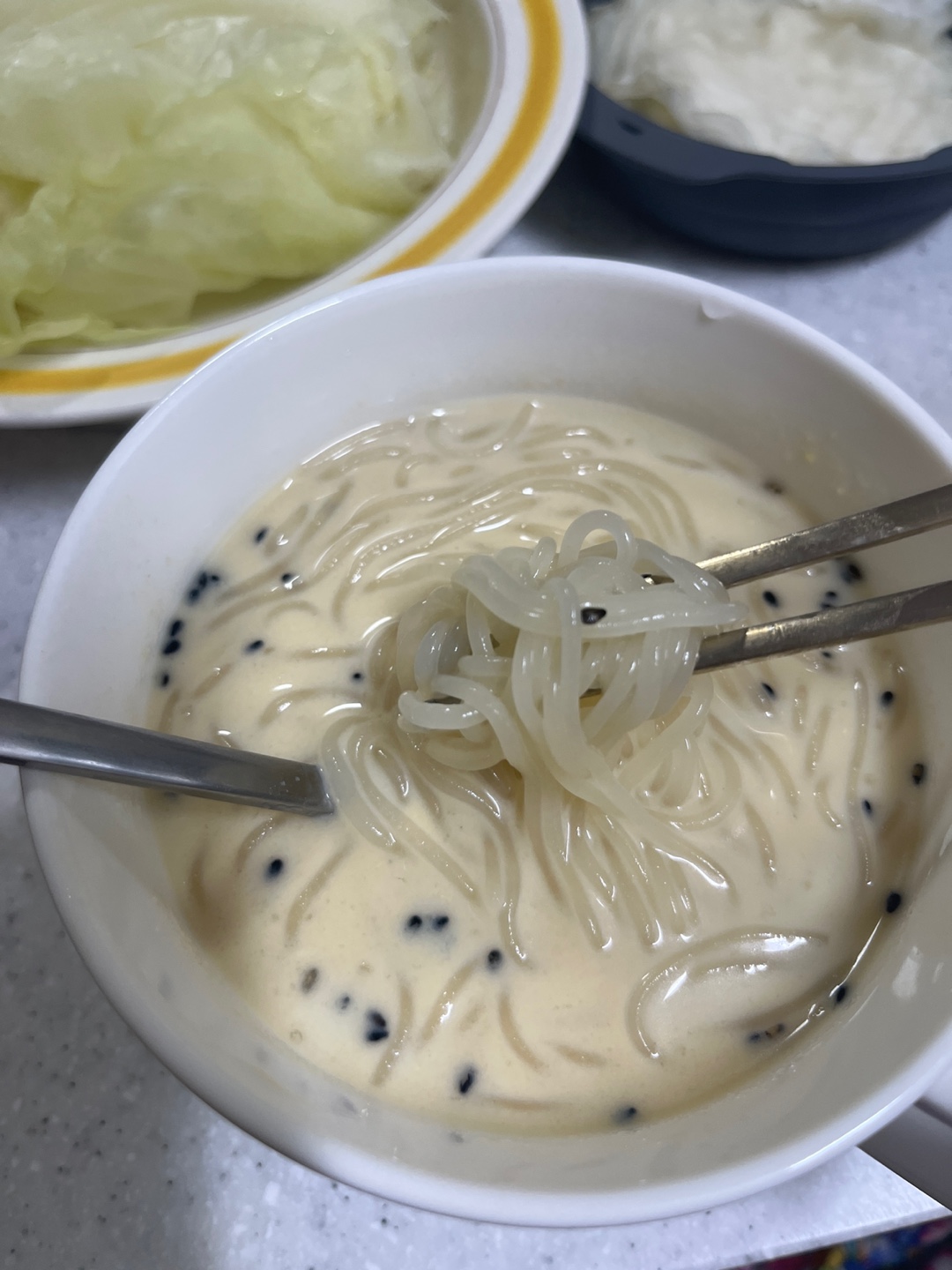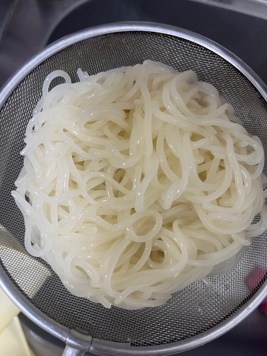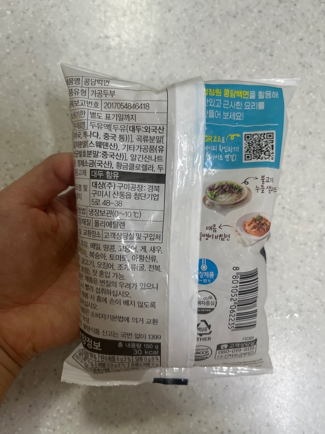 콩국수는 곤약면처럼 탱글한데 특유의 냄새가 나지 않습니다. 적당히 부드럽고 탱글해서 콩국수나 모밀, 비빔면 등으로 이용할 때 활용도가 높아보여요. 샐러드 누들로 활용해도 좋을 듯 합니다.