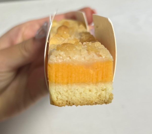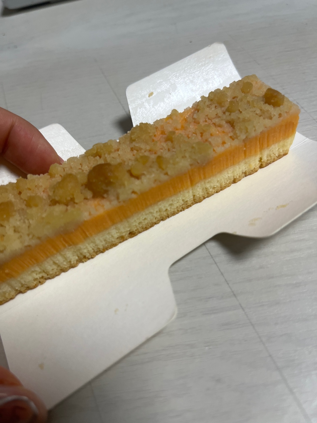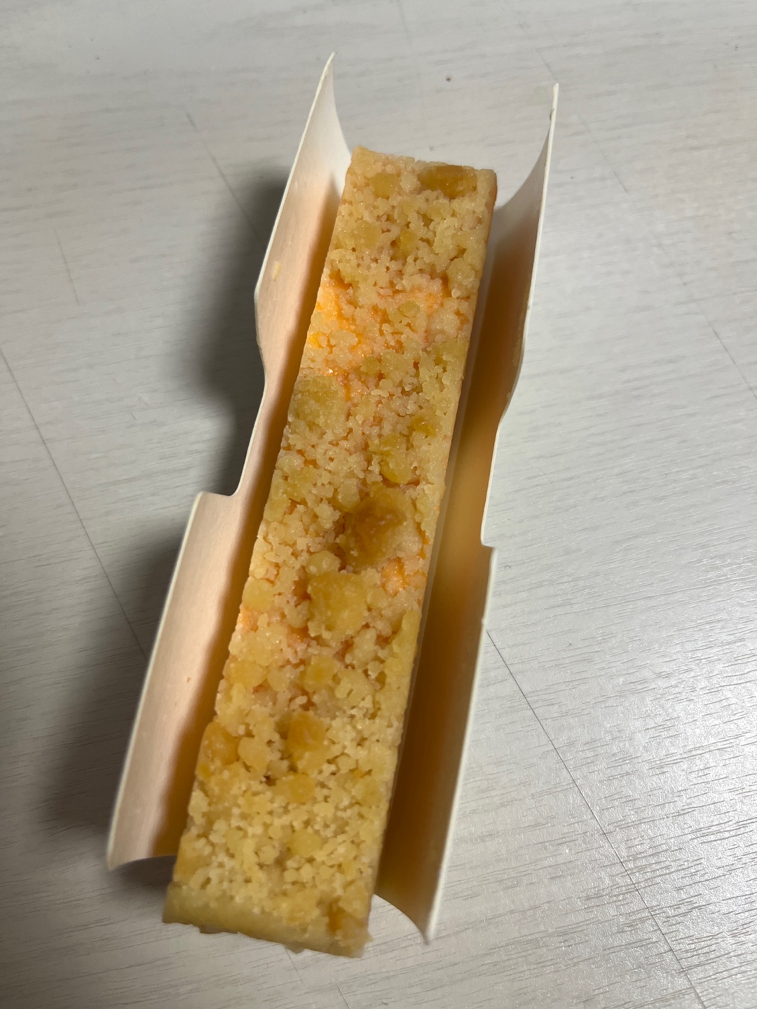 크기와 단면을 보시라고 딱풀과 크기 비교한 사진 올려봅니다. 단면은 오른쪽 이미지와 같습니다. 한입 먹어보니 역시나 들었던 것과 마찬가지로 황치즈 맛이 진하진 않았는데요. 식감이랑 조화가 나름 괜찮더라구요. 2천원이니 한번쯤 편하게 먹어볼만한 맛?! 위 크럼블도 씹는 맛 있어 좋았어요.