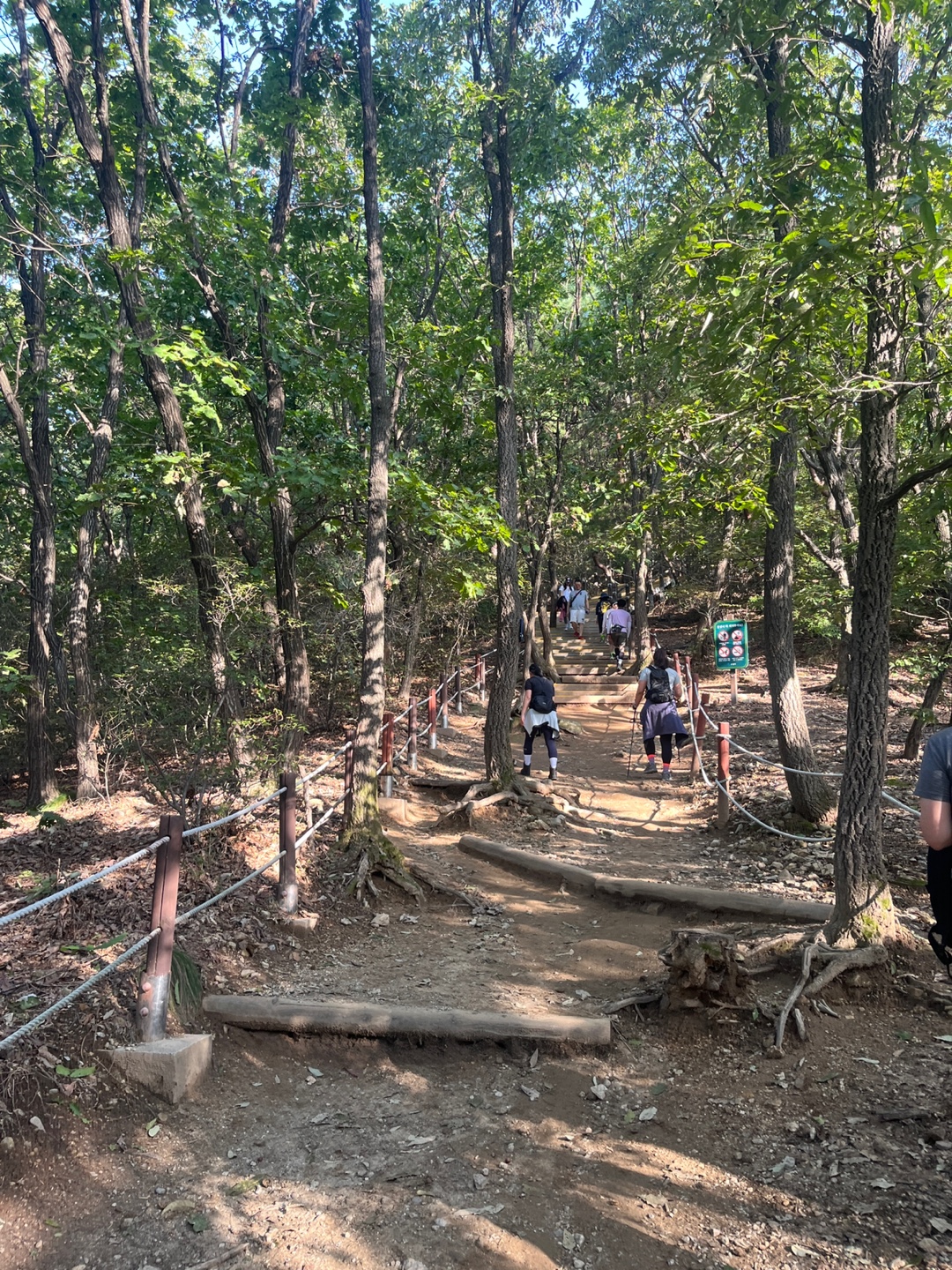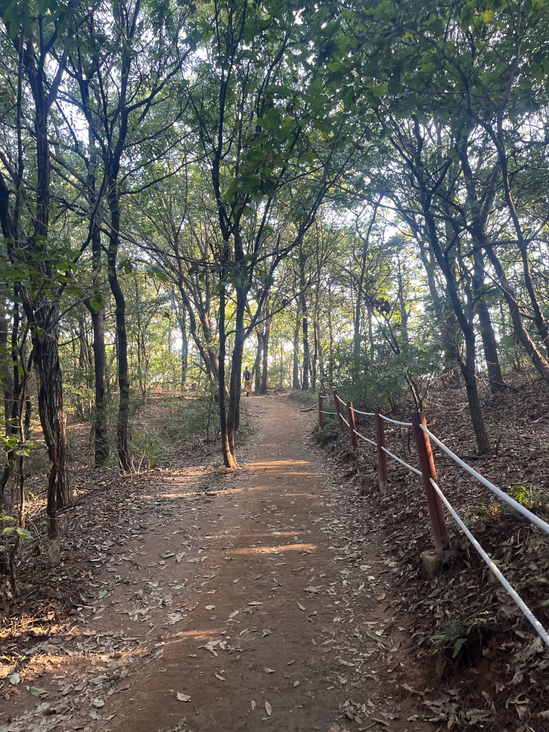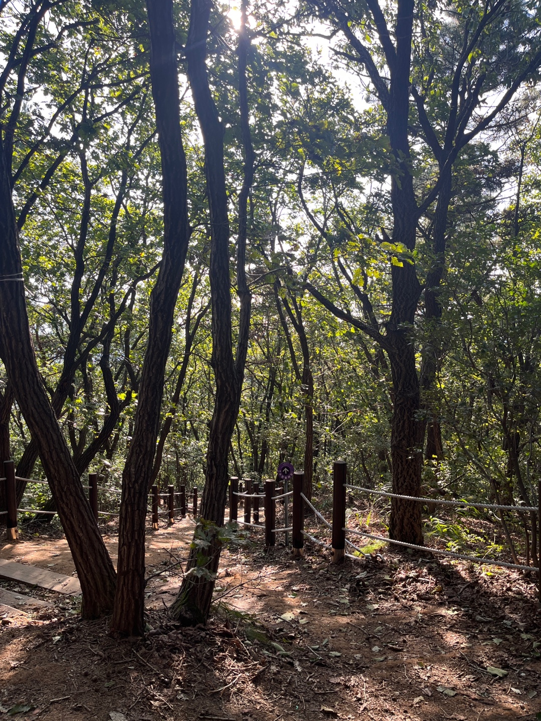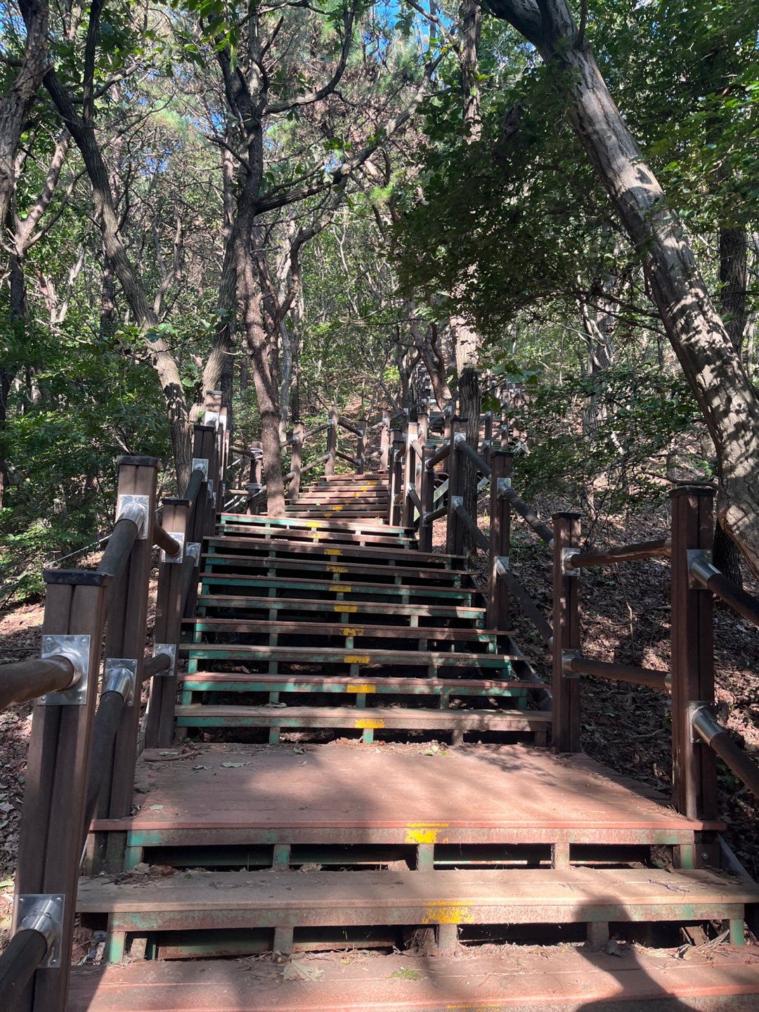 계단도 적당히 있고, 길이 잘 정비되어 있어요. 청계산처럼 좁은 계단만 있는 것도 아니고 코스가 다양하게 분포(?)되어 있어서 너무 바짝 붙어 올라가지 않아도 된다는 장점이 있습니다. 😂