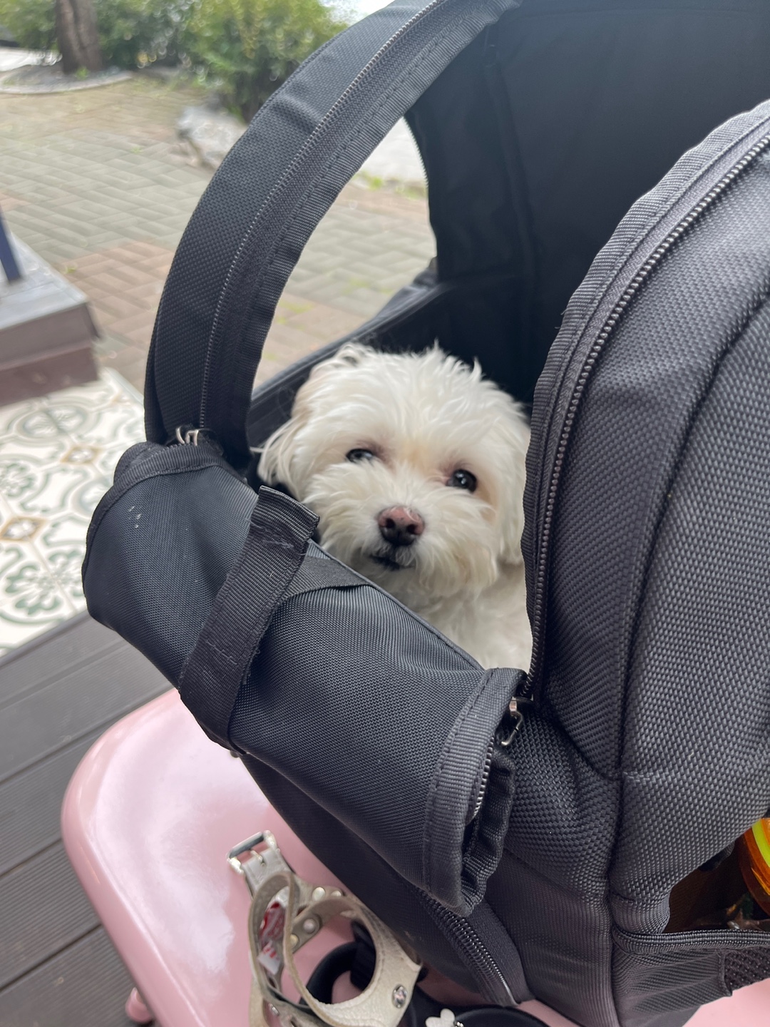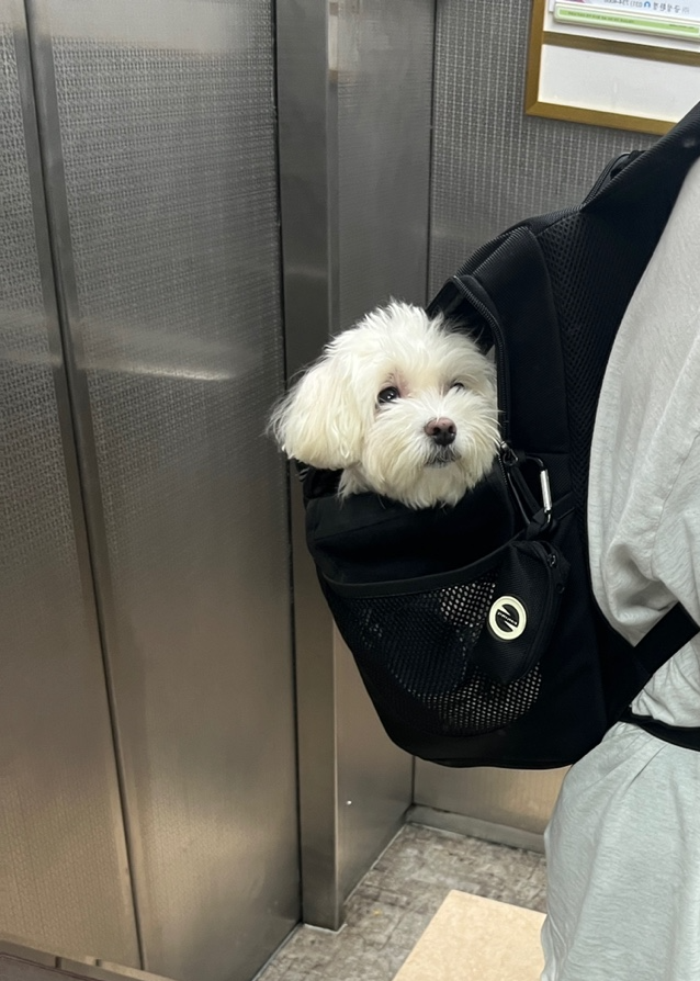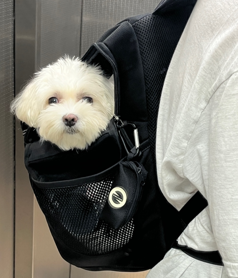 두부는 사실 가방을 좋아하기도 하고, 워낙 동반 가능한 카페와 식당을 자주 데리고 다녀서 나름 펫티켓이 좋은 강아지에요.(?) 워낙에 짖음이나 입질 등의 문제가 없기도 하고, 가방에서 조용히 휴식하는 경우가 많습니다. 사실 이렇게 얌전하게 휴식하기 전에 제가 충분한 산책과 운동량을 채워주기도 해요.