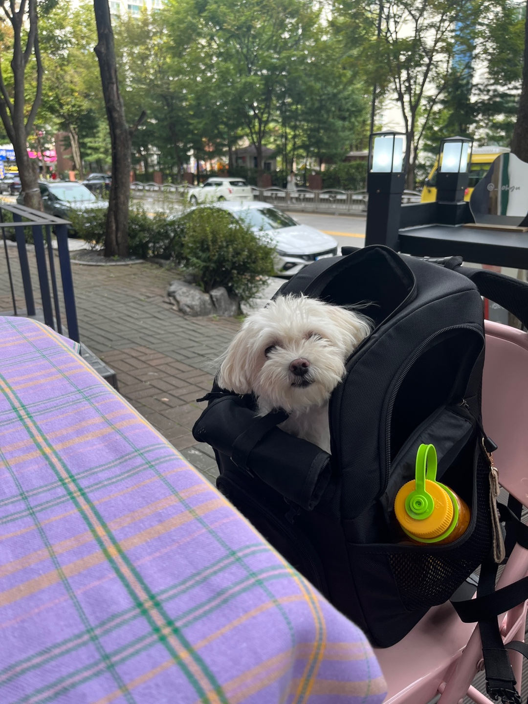 집으로 돌아오는 길, 야외활동 할 때에는 역시 심플리펫 백팩이 편리합니다. 자전거 타거나 등산할 때에는 이만큼 제가 편한 게 없어요. 💕 미금역 애견동반카페 그런데 수박쥬스까지 정말 맛있는 곳을 알게되어 행복한 하루였습니다. 강아지와 함께 갈만한 카페 찾으시고, 맛있는 수박주스 찾으신다면 강력추천이요!