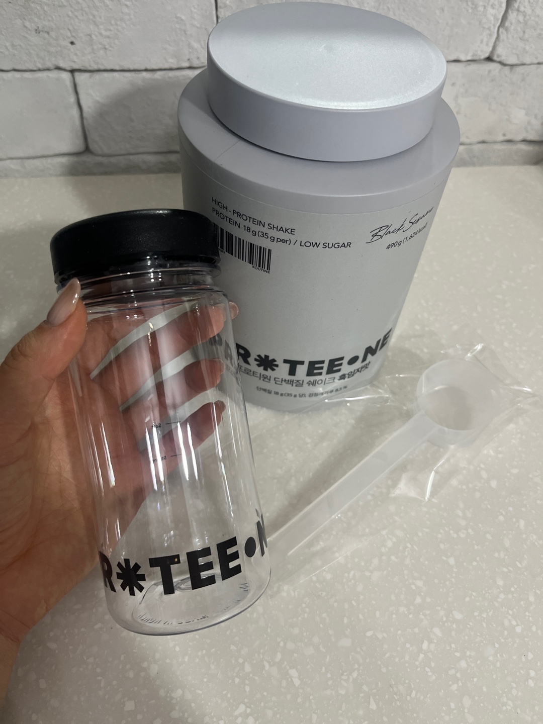 저는 지금 프로티원 흑임자 프로틴쉐이크랑 전용 보틀+스쿱을 사무실에 가져다두고 아침마다 한잔씩 먹어주고 있습니다. 스쿱도 센스있게 통마다 1개씩 따로 포장되어 왔어요. 용량 어떻게 떠야되지 고민할 필요없이 한번에 두 스쿱 떠서 쉐킷쉐킷 해주면됩니다.