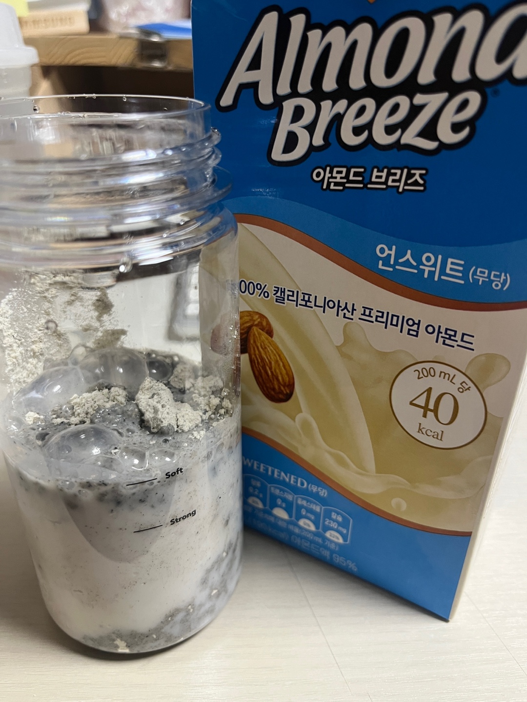 물, 우유, 두유, 아몬드브리즈 등 다양하게 선택해서 넣어드시면 되는데요. 개인적으로 유제품도 좀 줄여보잔 생가가이 들어서 요즘에 아몬드브리즈 언스위트 이용하고 있습니다. 너무 꼬숩고 맛있어요. 강추 👍👍