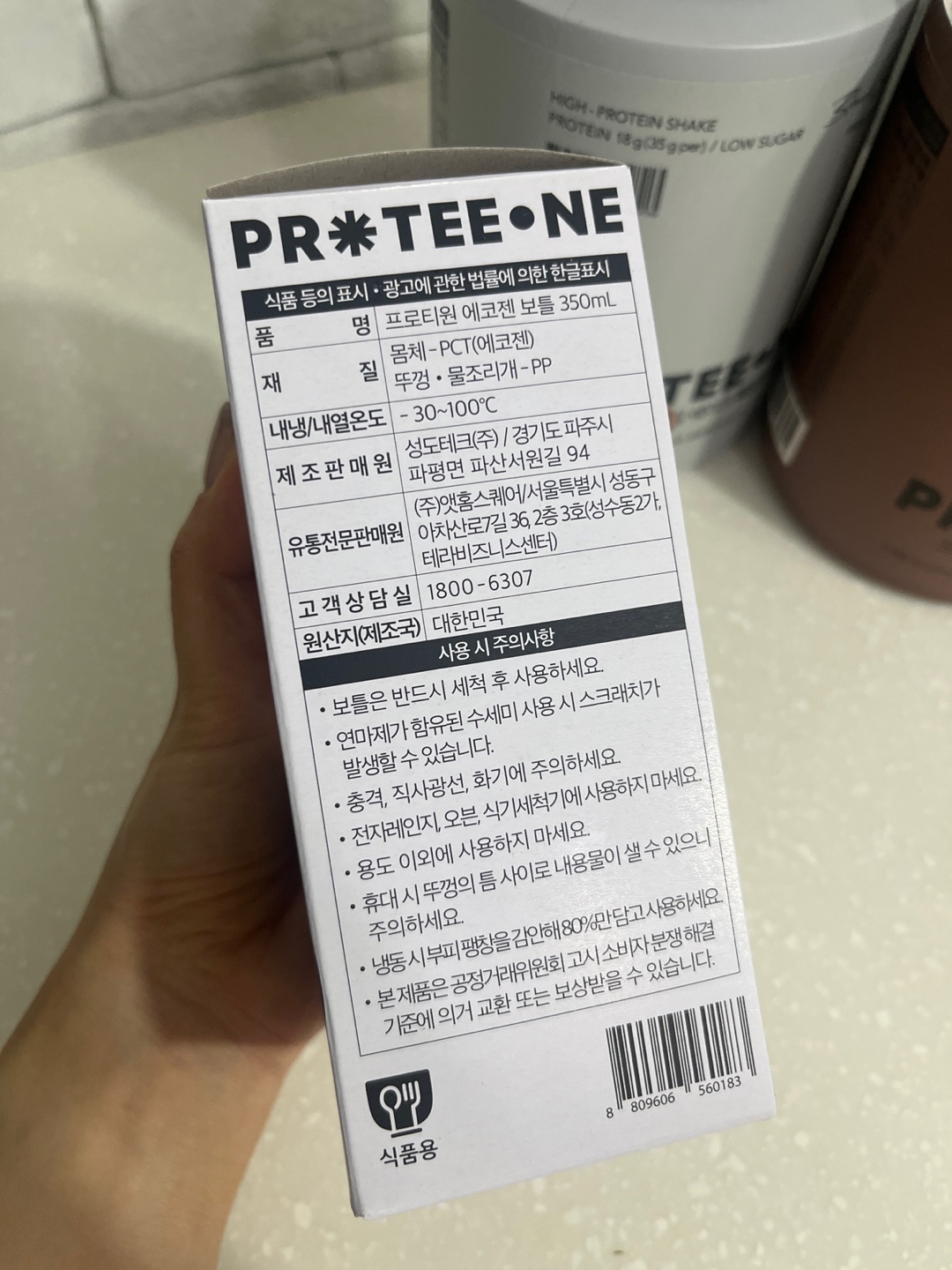 함께 온 프로티원 단백질쉐이크 전용 보틀은 뜨거운 물로 열탕 소독도 가능한 제품입니다. 용량도 적당해서 사무실 들고다니는 용으로도 아주 좋아요. 또, 눈금 표시가 되어 있어서 아몬드브리즈 얼마나 넣어야할지 감이 안 올 때 참고하기 좋았습니다. 조리개가 있어서 쏟아짐도 방지해주니 더 편하게 마실 수 있어요.