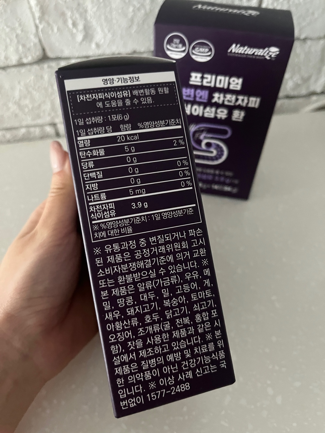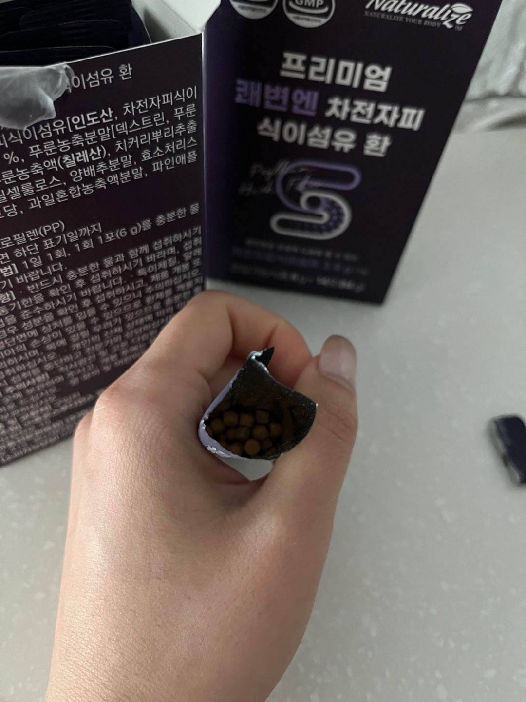 사진에는 잘 보이지 않지만 은은한 보라색빛을 띄는데요. 프리미엄 쾌변엔 차전자피 식이섬유환 저는 일주일 정도 꾸준히 복용해보았습니다. 음.. 생각보다 결과는 만족스럽지 않았어요. 😂 저렴하게 샀으니 망정이니 제돈주고 샀으면 아까울 뻔 했어요.