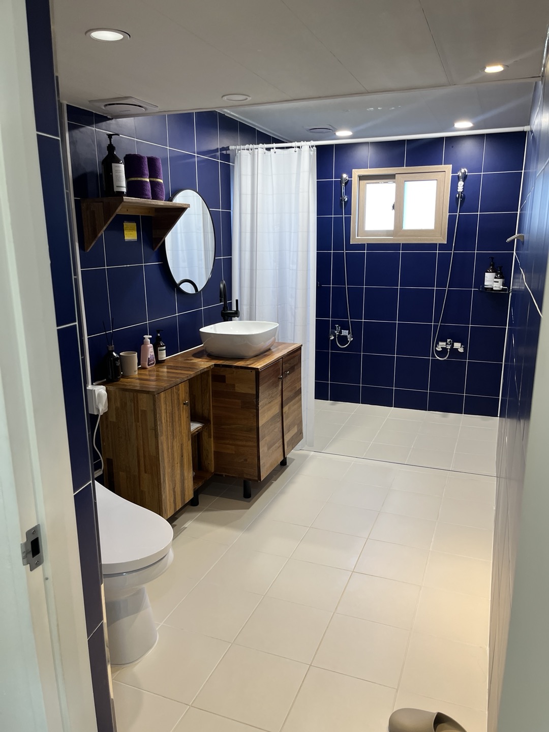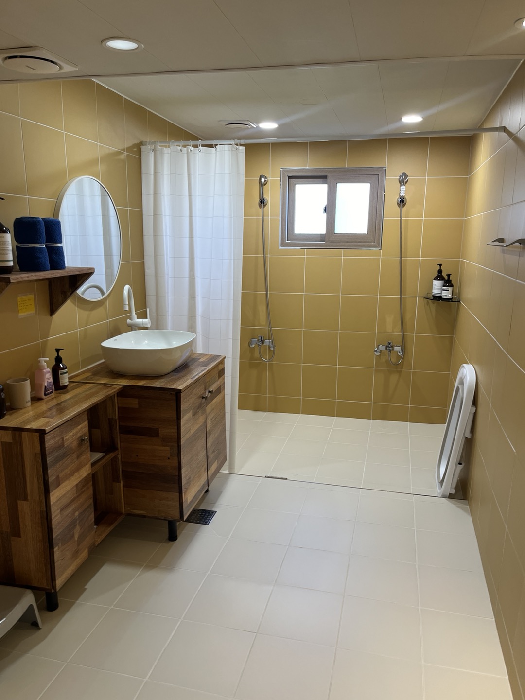 화장실 두 곳인데 굉장히 깔끔합니다. 치약, 샴푸, 트리트먼트, 핸드워시, 폼클렌징, 바디로션 등 다양한 제품들 이미 준비되어 있고 보이시죠? 아기 욕조도 있습니다. 👍 개인 위생용품 챙겨가시면 이용에 전혀 불편함 없게 다 준비되어 있습니다.