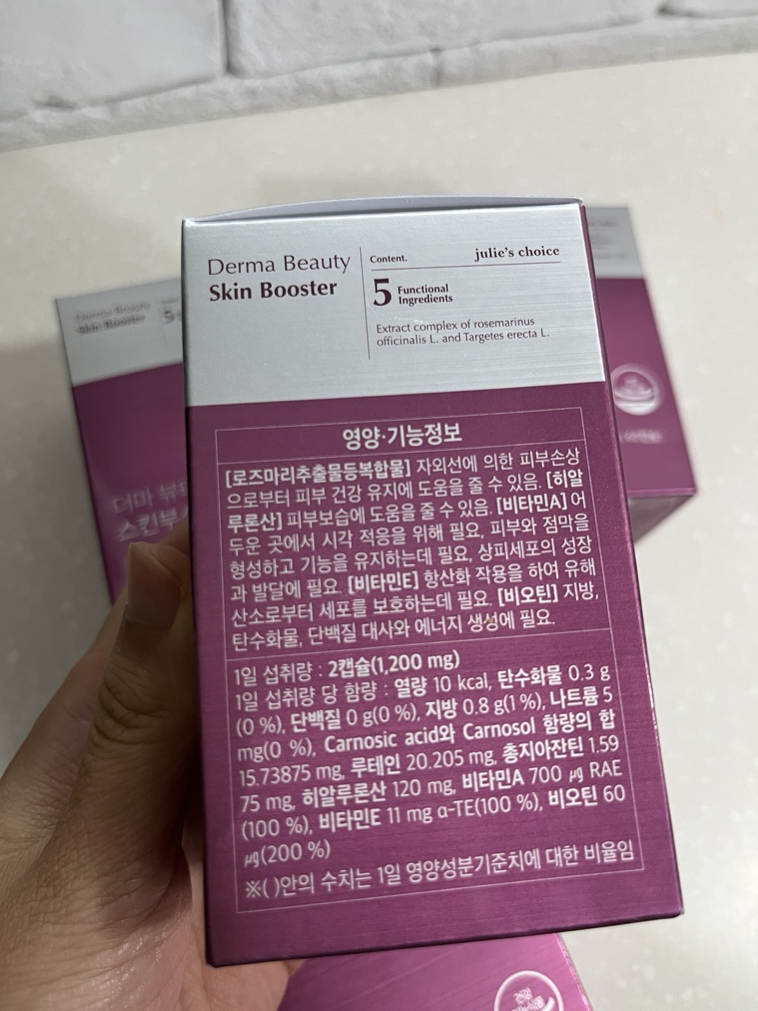 스킨부스터 성분은 위 내용을 참고해주세요. 비타민e, 비타민a, 비오틴, 히알루론산, 루테인, 총지아잔틴 등이 보입니다. 도대체 어떤 성분때문에 피부에 광이 나는지 모르겠어요..