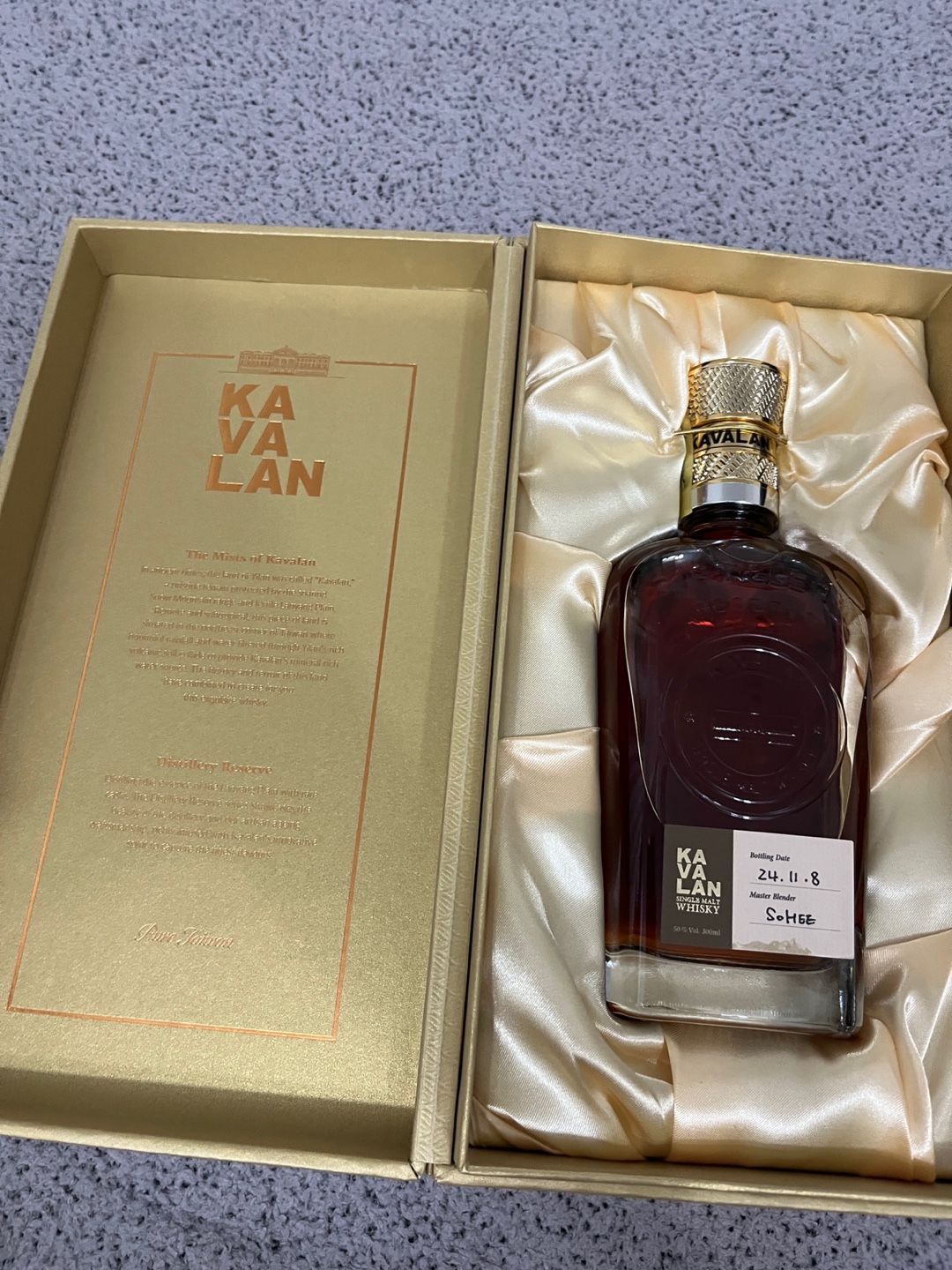 카발란위스키 고급진 케이스에 넣어주세요. 300ml의 위스키를 받아올 수 있습니다. 😋 위스키 좋아하신다면 한번쯤 해볼만한 체험이에요. 가격도 그렇게 부담스럽지 않고요! 저는 중요한 날에 한번 열어보려고 합니다.