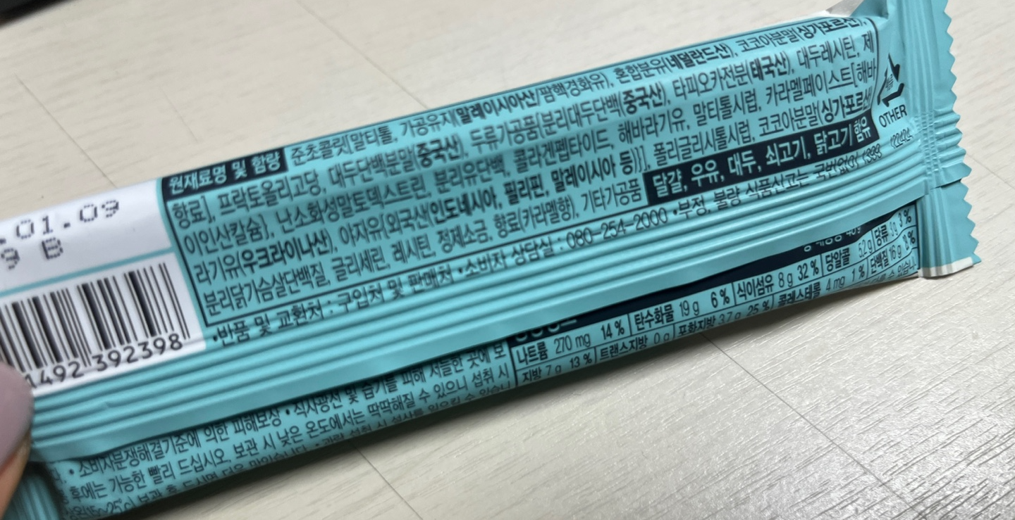개인적으로 이런 식감을 좋아하지 않는 편이라 하림 오늘단백바 먹어보고 재구매 할 일은 없겠다.. 싶은 생각. 피스타치오 식감이나 맛도 그렇게 강하지 않았고요. 😥 말티톨도 싫고..